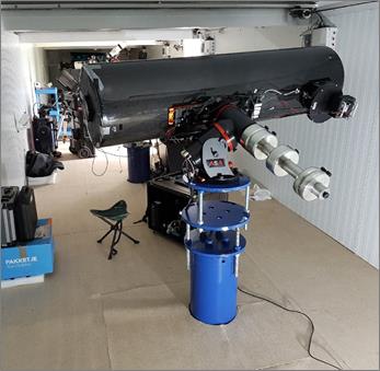 CBA Extremadura Observatorysaw first light in May 2018, and hosts a 0.40m f/5.1 Newton telescope on an ASA DDM85 direct drive mount, with a Starlight Xpress SX46 CCD camera, using an Integra85 focuser and rotator. Similar to our Belgian observatory, it also is a fully robotic observatory, with a Talon6 controlled roll-off roof structure. The observatory is hosted in the e-EyE astronomical complex, which is the largest European facility renting astronomical observatories.